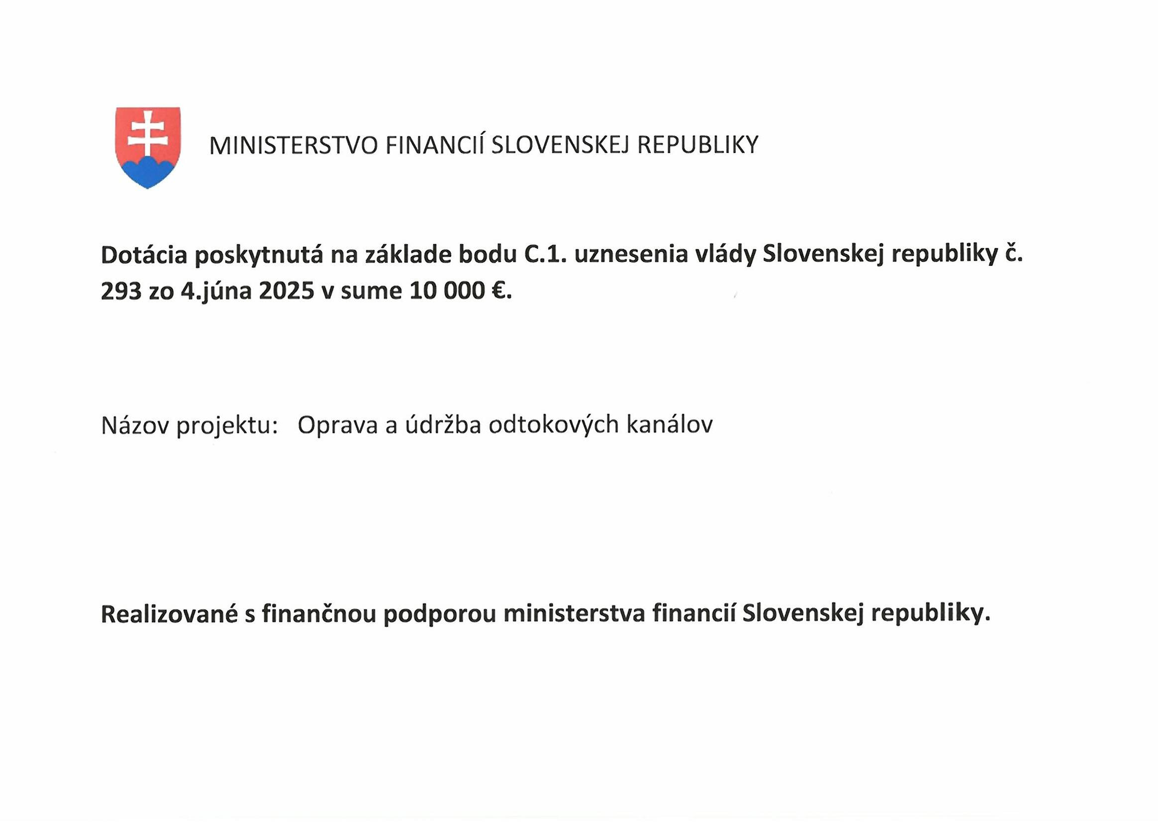 Dotácia poskytnutá z Ministerstva financií Slovenskej republiky